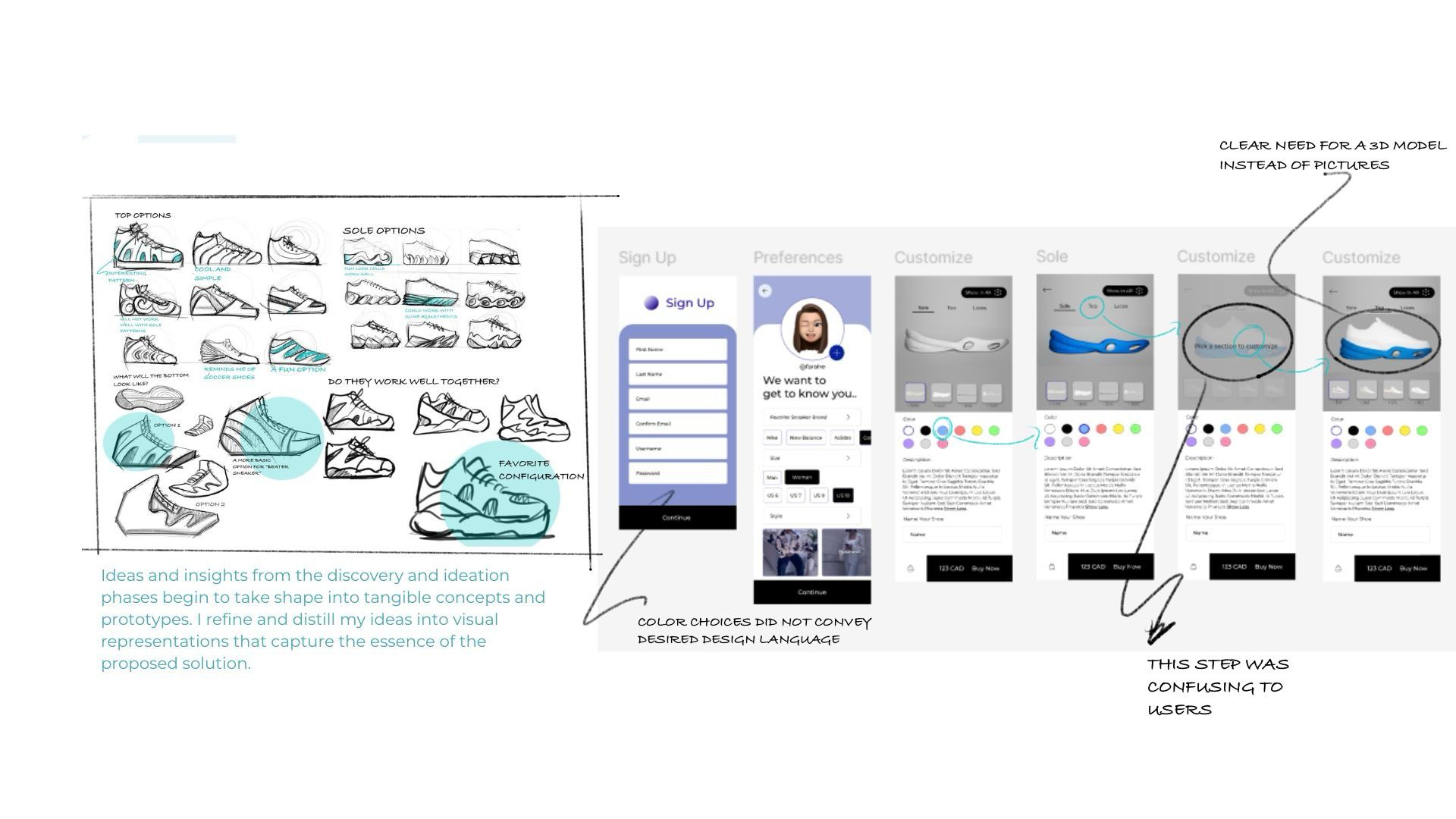 Throughout the process, every decision came back to one tension: how do you change behaviour without changing identity? Immersing myself in real sneakerhead communities online, observing how people talked about their collections, what they valued, what they defended, made one thing clear. This culture wasn't the enemy of sustainability. It was actually the most promising place to plant it. People who care deeply about the craft of a shoe, its materials, its construction, its story, are already halfway there. They just needed a product that spoke that language.